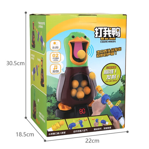 这款玩具鸭背后添加了人性化洞口设计,日常取球更方便。当小球发射成功时会发出趣味音效,促进孩子听觉发育。
