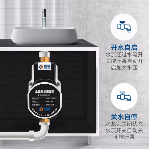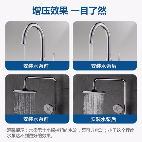 智能增压泵,内置永磁全铜电机,提供强劲动力。24V安全电压,让家人安心沐浴。永磁电机搭配离心叶轮,运行安静不扰人。