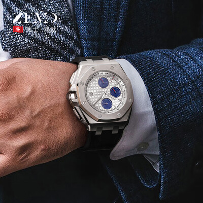 蓝白表盘的设计能凸显出丰富的层次感,在视觉上会给人眼前一亮的感觉。多功能自动机芯走时更精准,适合成功的商务人士使用。