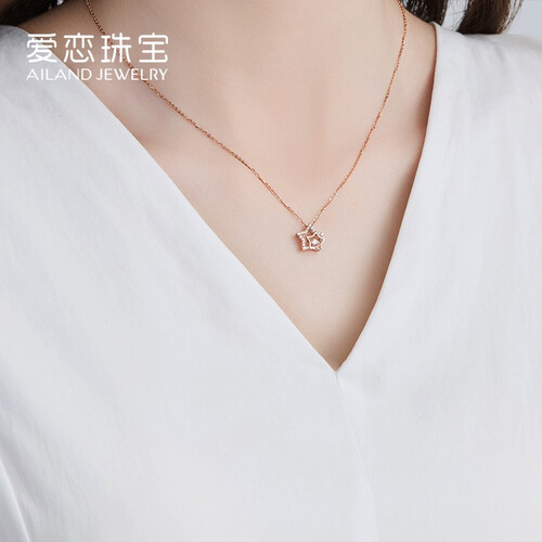 爱恋 18K玫瑰金星星锁骨项链