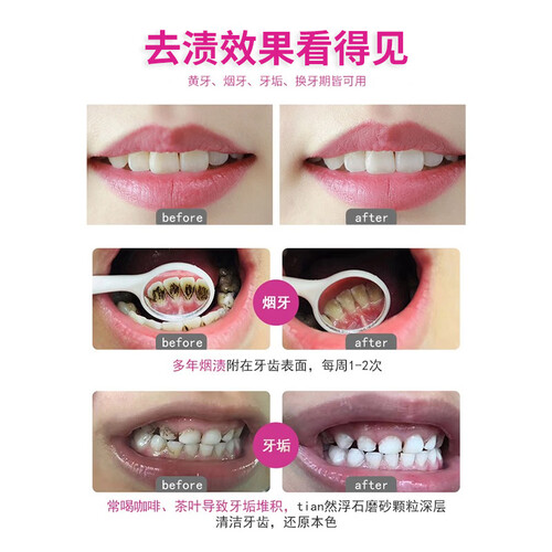 细腻膏体,清洁牙齿的同时不伤牙龈,且含有氟,能够强健牙齿。还能提高牙齿色泽,让色素污渍不易附着在齿面。