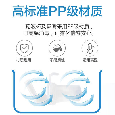 药液杯和吸嘴采用PP级材质,达到医用级的品质,使用起来更放心。虚拟活动阀技术加技,减少药液残留,雾化更充分。