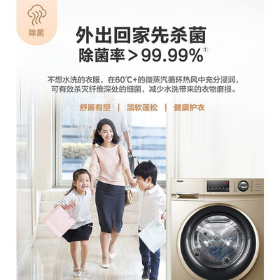 360°微蒸汽循环热风,微蒸汽空气洗,深层除菌,激活衣物全新蓬松状态。10KG大容量设计,多件衣物一次洗净不分批。