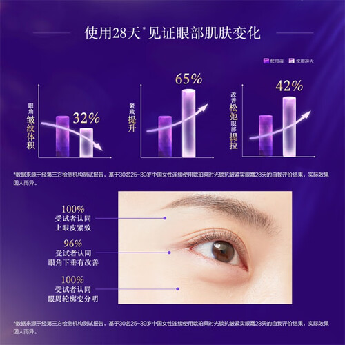 含有五种海藻精粹,为肌肤补充胶原蛋白,改善肌肤弹性。添加双倍莲胚芽提取物,注入足量胶原蛋白,眼周肌肤更紧致。