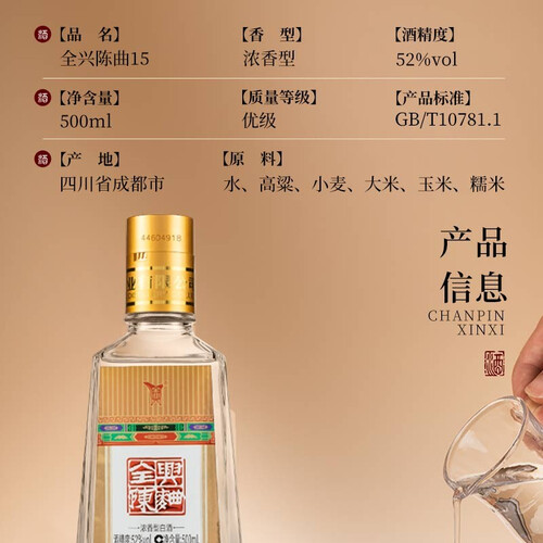 采用延时发酵工艺制作而成,没有杂味物质,品质十分纯净。倒酒时的酒线宛如丝一般,细而不断,倒入杯中弥香不散。