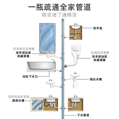 采用复合配方,温和不刺激,含有清新花香,快速疏通管道的同时去除管内异味,持久清香。消灭管道内滋生的细菌,呵护家人健康。