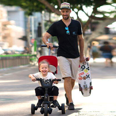 外观时尚有型,坐垫柔软舒适,车身可一键折叠,收纳携带轻松省力,飞机可携带使用。遮阳棚和推把可以拆卸,适应不同年龄段使用。