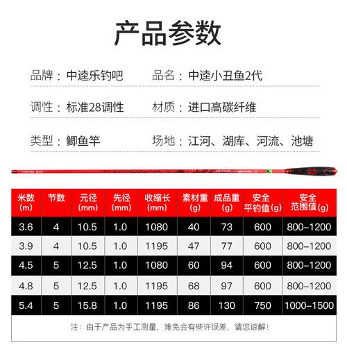 采用进口碳纤维材质制作,具有较强的韧性,使用时弹力充盈腰力足。手把采用PU材质打造,手感舒适,防滑吸震。旋转竿稍,不易缠线。