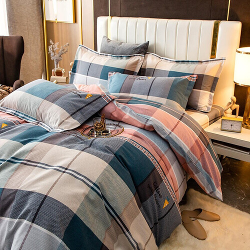 加厚全棉磨毛面料自主,手感厚实柔糯,睡眠陪伴温暖舒适,尽享健康裸睡。格纹拼条纹图案,色泽高雅大方,彰显北欧风情。