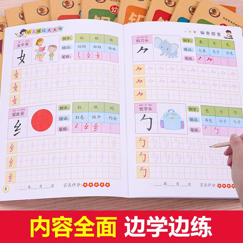 致力于幼小衔接的描红本,难度由浅入深,排版科学简洁,搭配萌萌的小插图,孩子更爱写。提升儿童的硬笔书法水平和拼音水平。