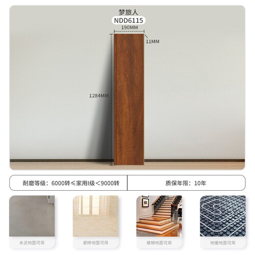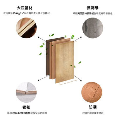 三氧化二铝耐磨层,蓝宝石同成分更加耐磨耐用,易打理,污垢简单擦拭,轻松搞定无需精油打理,采用锁扣系统,无胶安装