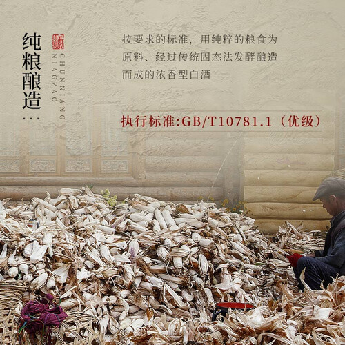 采用古窖池发酵,发酵时间长达90天以上,香味更加丰富,酒质细腻饱满。酒体如水般清澈,入杯酒花密集。