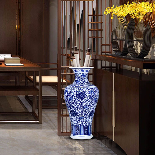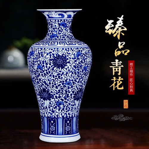 经过多道古法制瓷,瓷制细腻,手感顺滑,让花瓶质感更顺滑。景德镇青花老料配方,色泽纯正,颜色亮丽,插花更有艺术感。