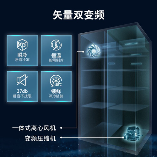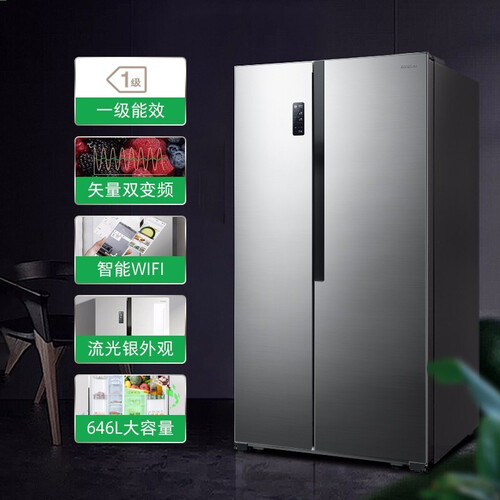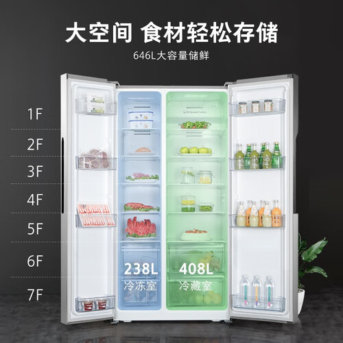 拥有变频保鲜功能,可以锁住食材中含有的水分,食物长久放置也不容易坏。冰箱拥有646L的大容量,可以放心存食材。