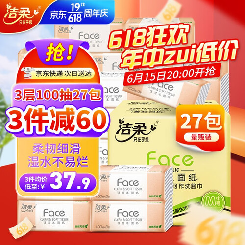 洁柔 柔韧抽面巾纸
