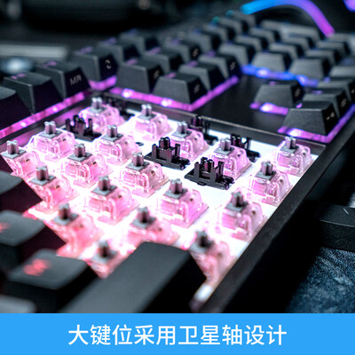 键盘采用炫酷灯效,还能根据需求进行自定义,游戏使用更具氛围感。键帽采用专属特制的95度墨灰色,关闭背光状态也不再单调。