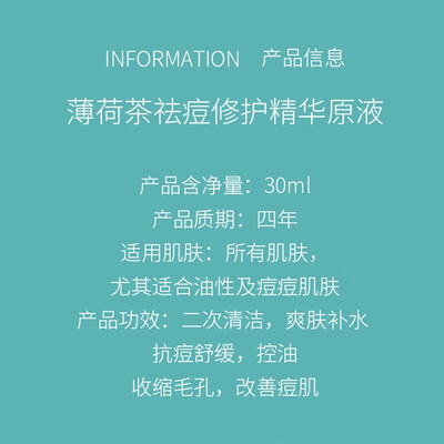 含有薄荷茶成分,能够舒缓肌肤,控制肌肤水油平衡,收缩毛孔,改善痘肌痘印。植萃深层滋养,改善肤色暗沉,令肌肤焕发光彩。