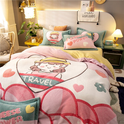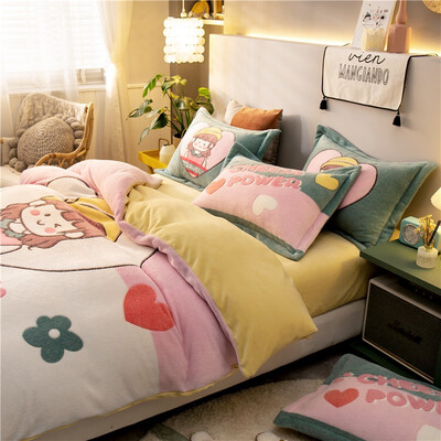 动物卡通图案印花,精致又可爱。四件套选用优质法兰绒面料制作,质地细腻柔软,舒适保暖,能有效呵护您的好睡眠。