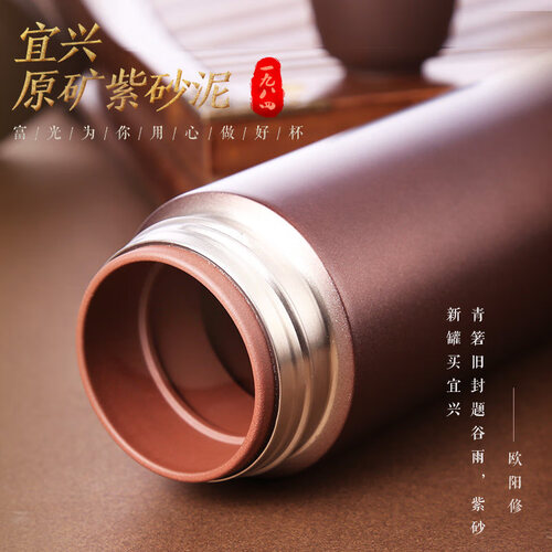 内胆选用宜兴原矿紫砂泥打造,紫砂透气性能好,用它制成的保温杯泡茶不会夺去茶香,茶香十分浓郁,因此受到很多饮茶人士的喜爱。