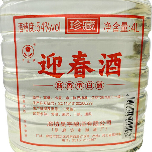 迎春纯粮原浆酒,为廊坊特产,酒色微黄清澈透明,香气谐调。采用大桶装设计,可与好友一起畅饮。