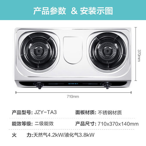 采用不锈钢宽大面板,面板稳固防腐蚀,轻松放置大型锅具,易清理不残留,简化日常家务。
