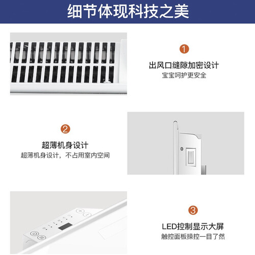 智能恒温控制面板,使温度保持稳定,不会忽高忽低,避免造成大人孩子受凉。智能变频的控制面板,升级恒温体验,省电省钱更省心。