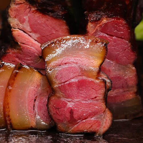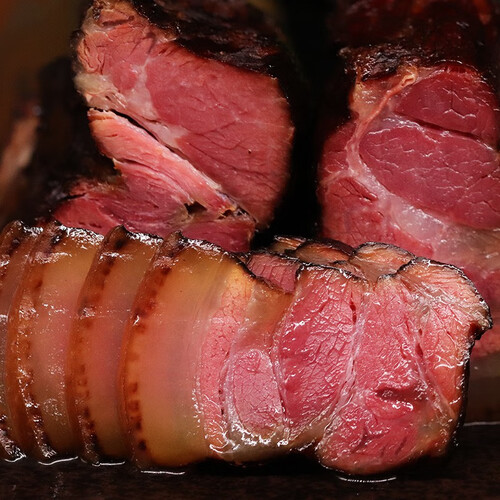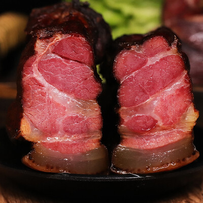 采用农家散养的前腿猪肉,经过松柏枝烟熏,让你享受别具一格的风味与香气。肉质鲜嫩,瘦而不柴,吃起来口感很美味。