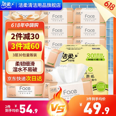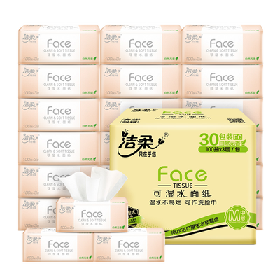 你只需轻轻一按,就能打开这包面巾纸,因为它创新地采用了弧形压线。加厚的3层设计让纸巾在遇水的时候不易破。