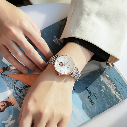 镶钻的表盘设计,绽放个性炫酷的魅力,尽显奢华美感,透明表背,舒适贴合你的手腕线条,带你充分领略机芯运作之美。