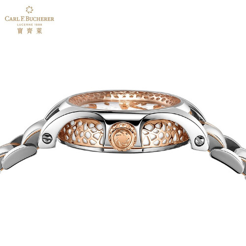 小巧的表盘设计,衬托出纤细的手腕,佩戴在手上更显精致感。镂空雕花精钢表壳,精美别致,彰显品牌质感。