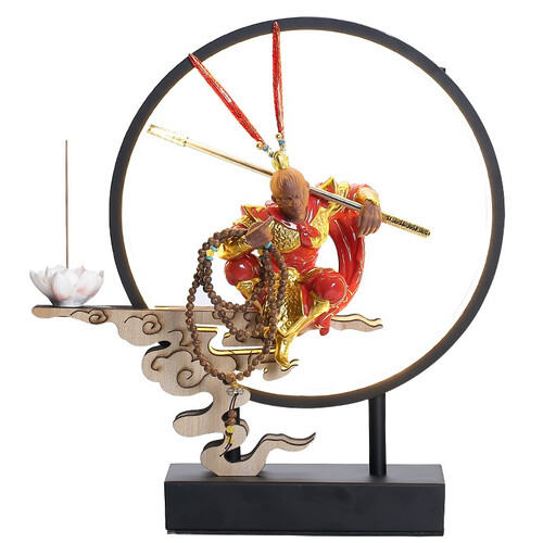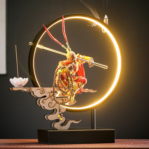 悟空身穿金色铠甲,头戴凤尾紫金冠,双眼炯炯有神,配上LED暖灯,瞬间点燃热血,带您重温经典。