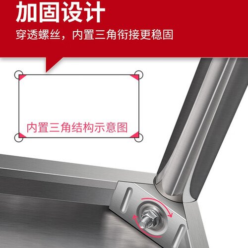 采用加厚不锈钢层板,稳固结实,光滑易清洁,横管固定设计,有效提升承重力,升级折边设计,圆滑平整,使用更安全。