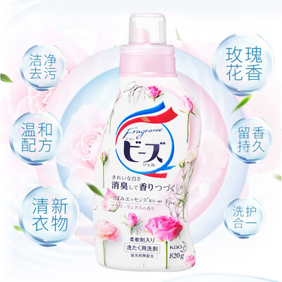 散发清新的玫瑰果香,味道好闻,收到大众的喜爱。洁净的配方瓦解多种污渍的困扰,清洗省力,衣物蓬松柔软。