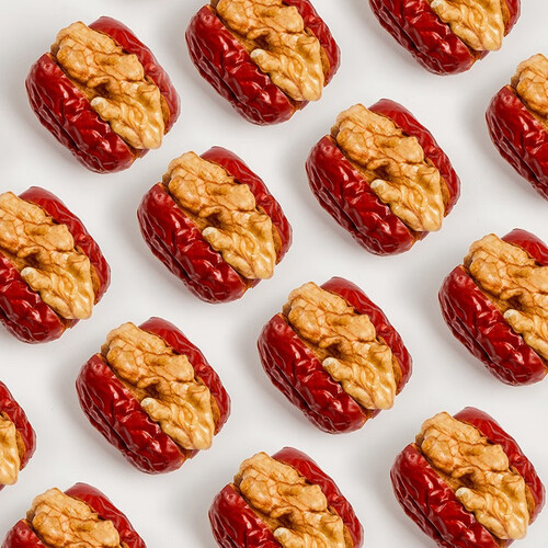 选用天然好食材,健康无添加,皮薄肉厚枣核小,搭配酥脆可口相结合。恰到好处的干湿对比,枣香、核桃香清新扑鼻,一口香脆甘甜。