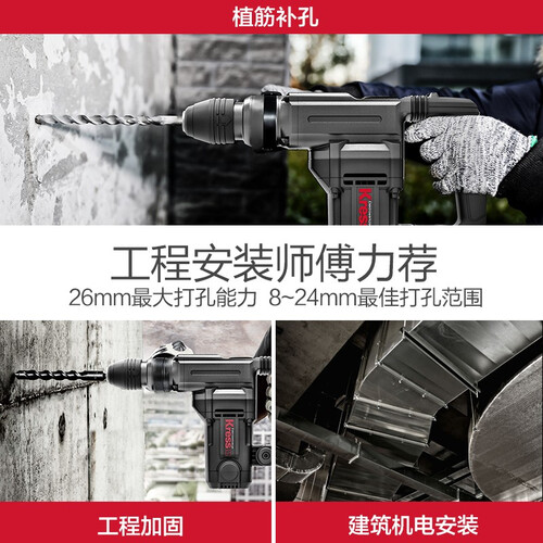 离合保护结构,打到钢筋会自动停止,使用起来更加安全可靠。机身为镁铝合金材质,质量轻,更加坚固。