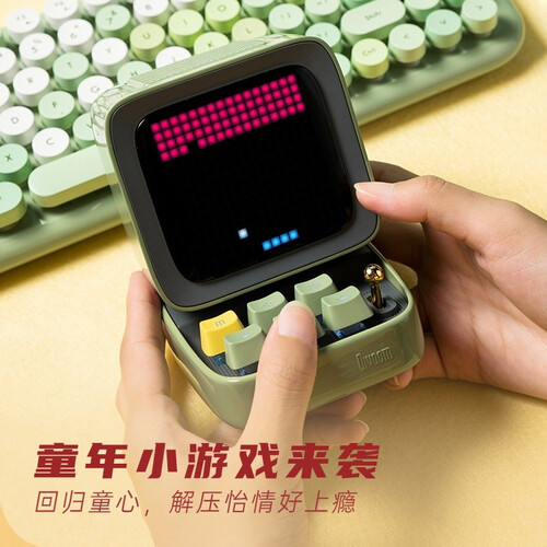 像素外形设计,搭配大地绿配色,营造出复古又俏皮的氛围。此外支持手机和像素屏双屏互动,传输音乐,使用方便。