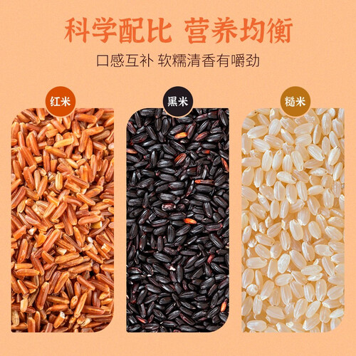 可用于代餐饱腹的高膳食纤维糙米,采用三种糙米合理配比,均衡口感与营养,含有的营养花青素,更好的调理肠胃,健康有品质。