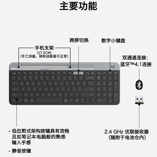 轻薄多设备键盘,造型设计前卫,使桌面搭配简洁时尚。紧凑布局帮你充分利用空间,含有数字小键盘地全尺寸设计,减少手臂移动。