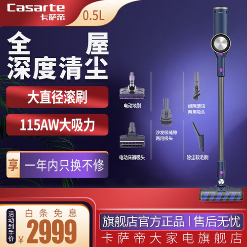 安装6节大容量电池,具有持久动力,并保持长续航。内置高速增压电机,拥有115AW大吸力,清洁没有盲区。