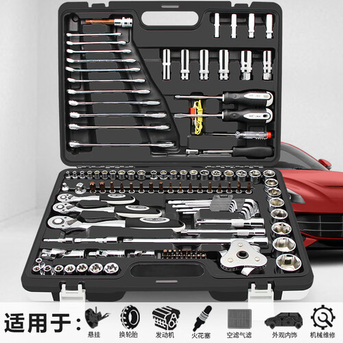 123件套专业汽车修理工具套,72齿弯柄棘轮,正宗铬钒钢锻造套筒终身保用,用坏免费换新。汽车工具扳手弯柄不伤手使用轻松。