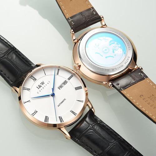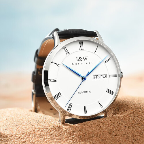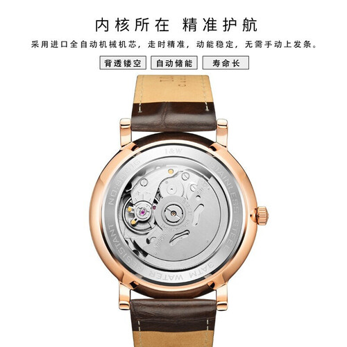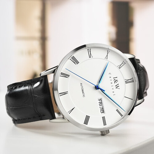 进口全自动机械表芯走时精准,淬蓝表针搭配上复古罗马刻度,尽显大气典雅。拥有日历星期双显示,实用又美观。