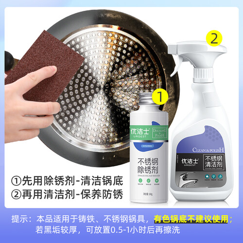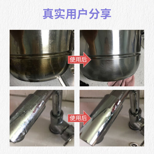 快速去除不锈钢及金属表面上的铁锈、水垢、皂垢,让清洗变得不再费时费力,添加光亮因子,让锅具灶具光亮如新。