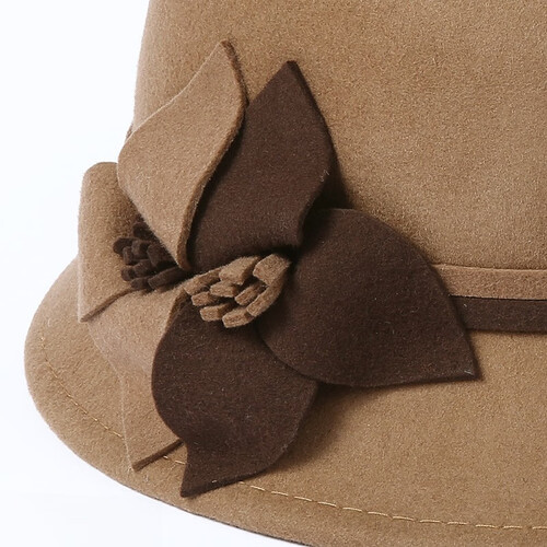 双色立体花朵装饰,展现女性优雅的气质。经典的驼色色调,方便搭配各类服饰,显得成熟稳重。