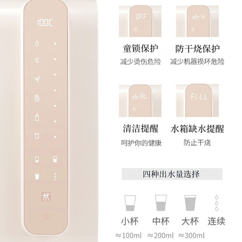 水箱缺水时会发出提醒,避免干烧损坏机器。机身顶部设有硅胶垫,方便存放水杯。水箱采用翻盖设计,接水更便捷。