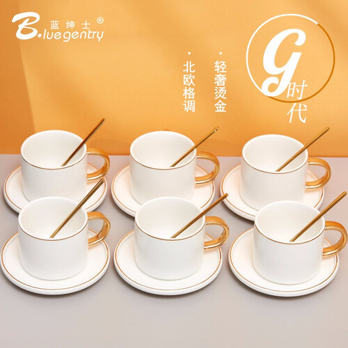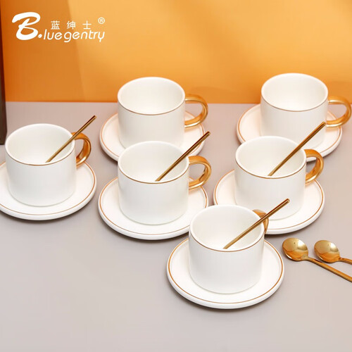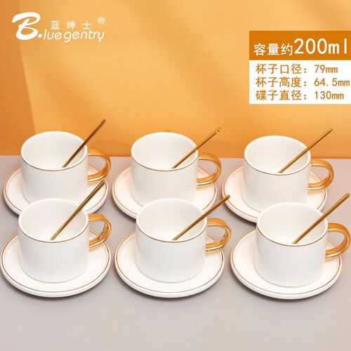 纯白色杯身,简洁大方,采用手工描金工艺加以装饰,极具轻奢感。陶瓷咖啡杯,经过高温烧制而成,不含铅化物,使用更加安全哦。
