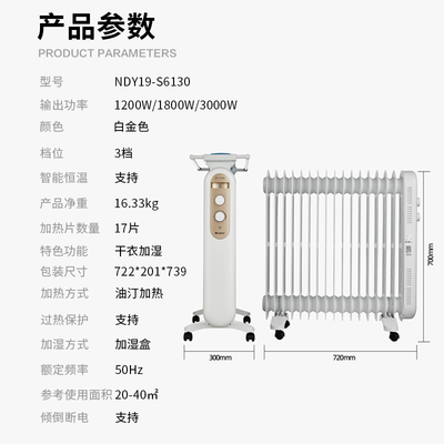 内置多片宽厚油汀,有效提升送暖面积,实用方便。双U管加热,循环散热,升温更快加速。防烫尾片,避免烫伤。