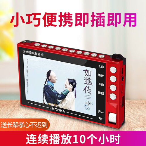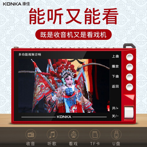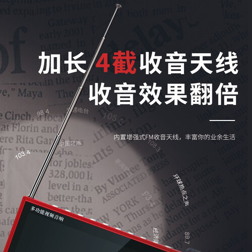 内置双磁性大喇叭,声音洪亮不失真,老人家听得很清楚。内置内存卡可以自主下载音乐,外置伸缩天线接收多频广播。