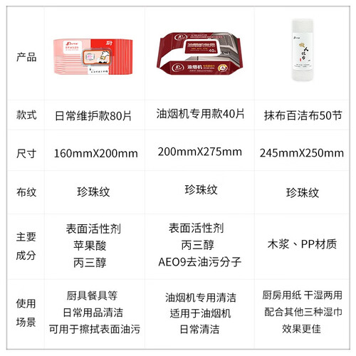 添加了表面活性剂、苹果酸等去油污成分,一擦就可以去除油污。抽纸方式的设计,使用更加方便,省时又省力。