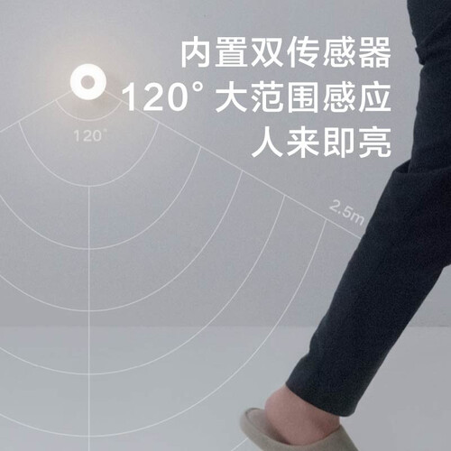 采用磁吸结构设计,可随取随放,使用更加方便。此外搭载光敏+人体双传感器,拥有120°大感应范围,暗光有人自动亮起。