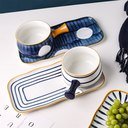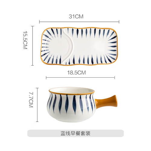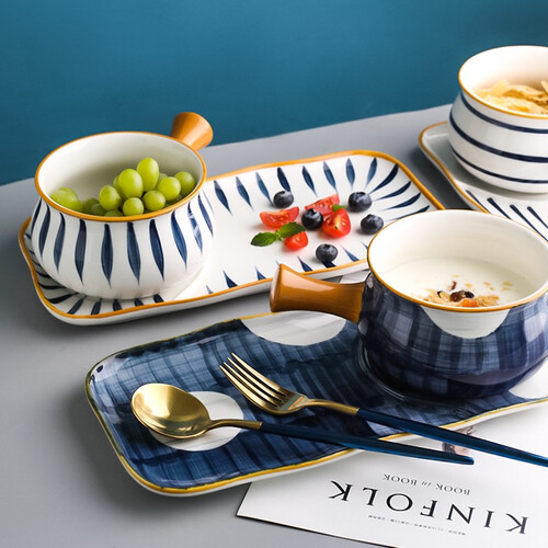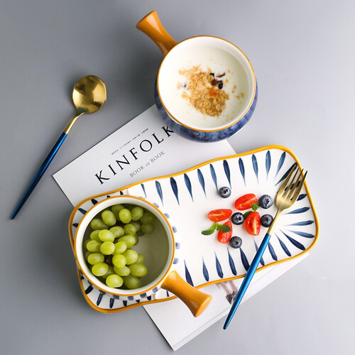 由手绘釉下彩工艺制成,颜料不与食物直接接触,盛物更加安全。搭配舒适手柄,符合人体工学设计,便于拿取不累手。